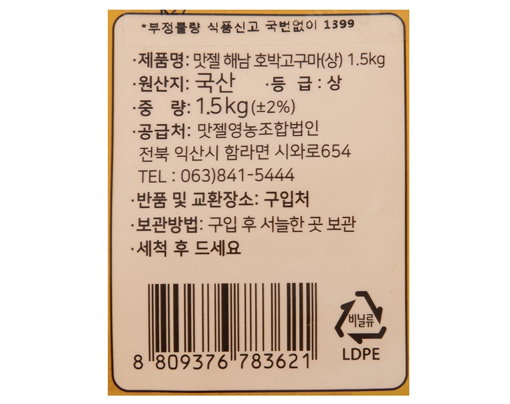 | 제조연월일, 소비기한 또는 품질유지기한 | 업데이트 예정 | 세부 품목군별 표시사항 | 농수산물 : 유전자변형(해당 없음) / 지리적 표시사항(해당 없음) |