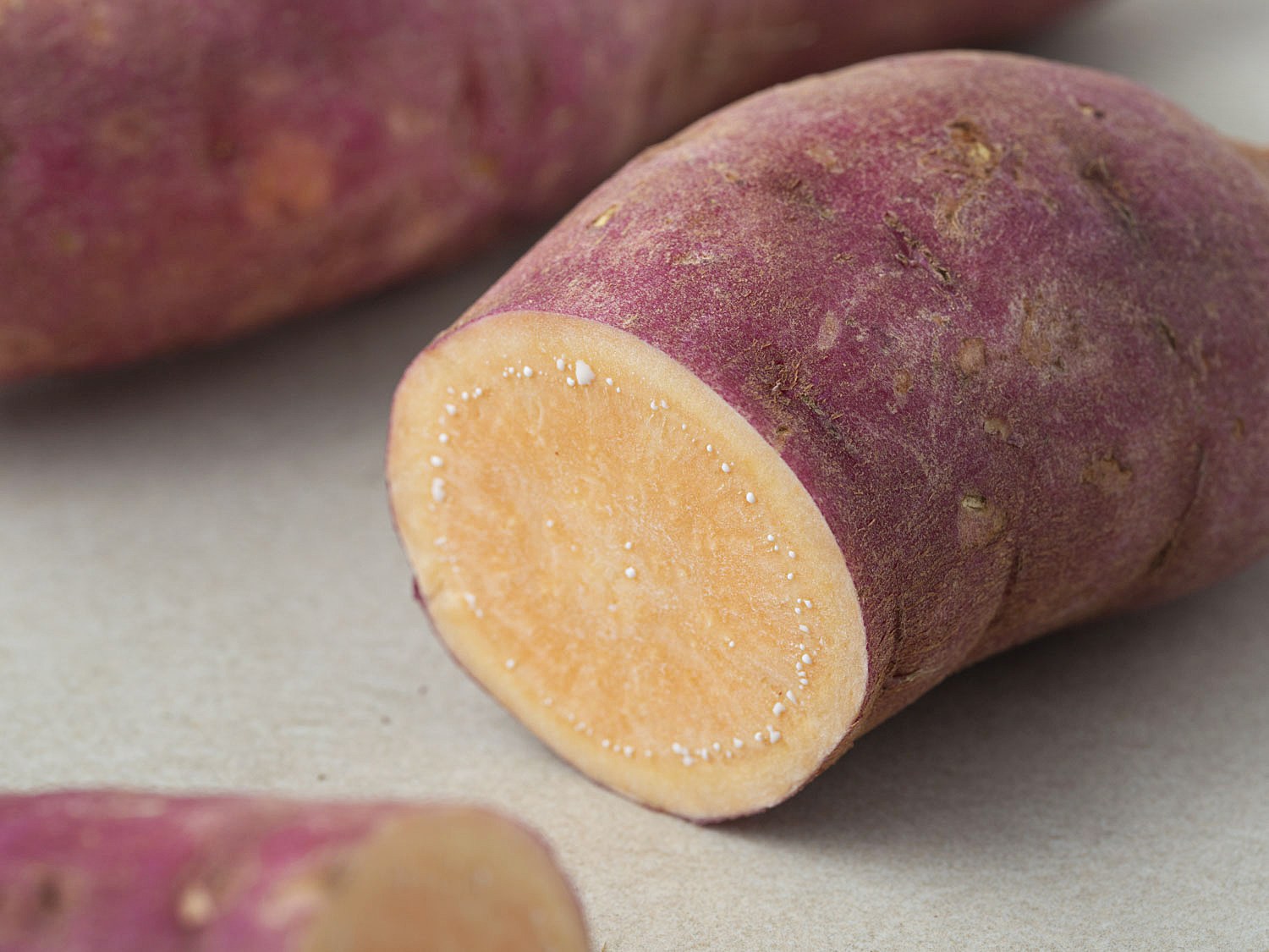 씻은 후 그대로 먹어도 은은한 단맛이 느껴지는 호박고구마예요. 찜기에 찌거나 노릇노릇하게 구우면, 속이 노란색으로 먹음직스럽게 변하는데요. 호호 불어 한 입 먹으면 촉촉한 식감 사이로 부드러운 달콤함이 느껴진답니다. 적당히 썰어 튀김, 전으로 만드셔도 맛있어요.