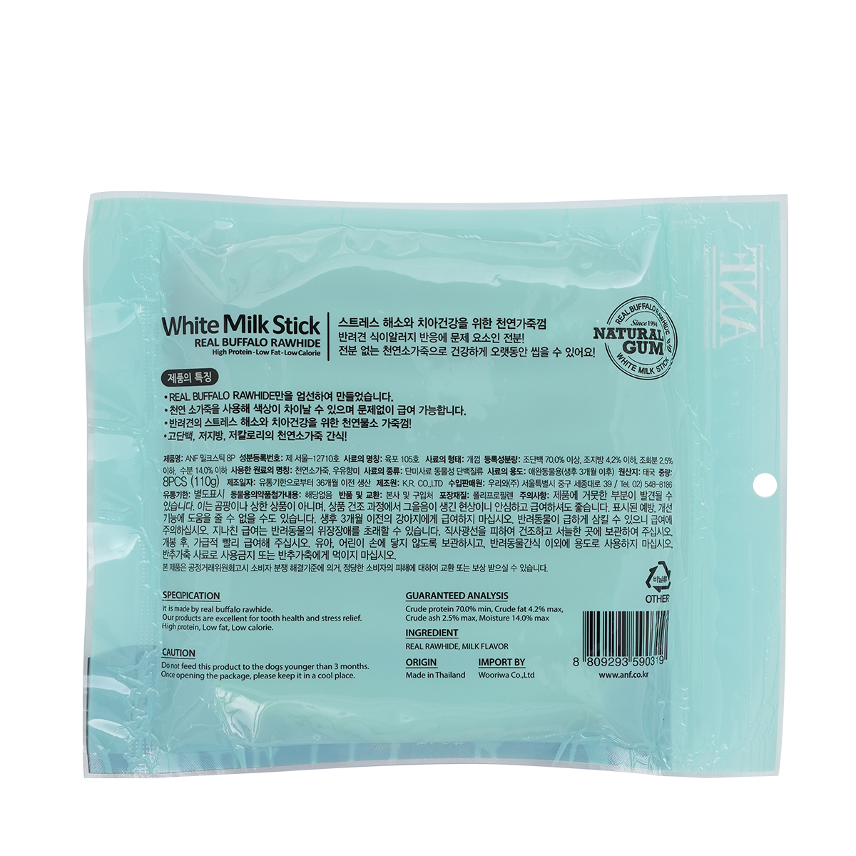 | 품명 및 모델명 | ANF 독 로하이드 밀크스틱 8P | 인증/허가 사항 | 사료관리법에 따른 성분등록번호 : 컨텐츠 참조 |