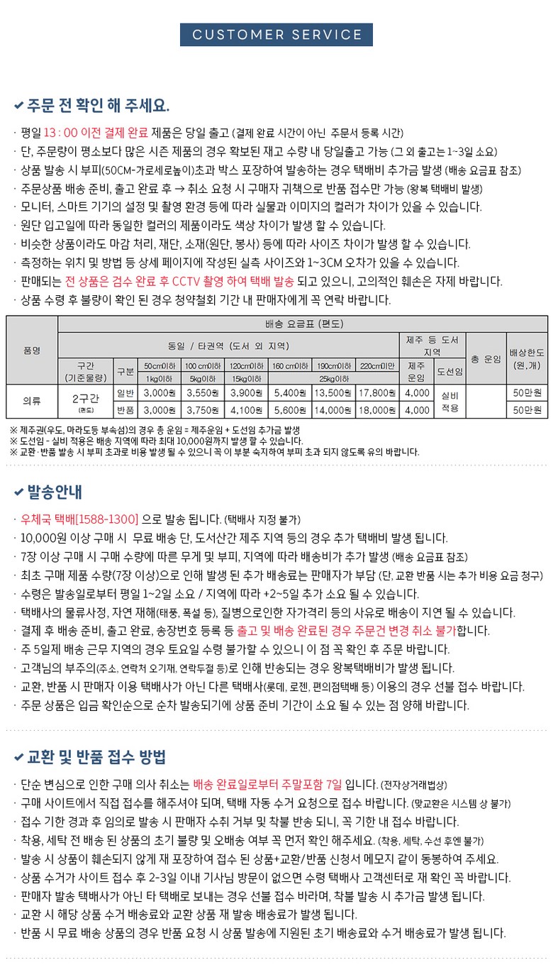 - ㆍ교환/반품에 관한 일반적인 사항은 판매자가 제시사항보다 관계법령이 우선합니다.