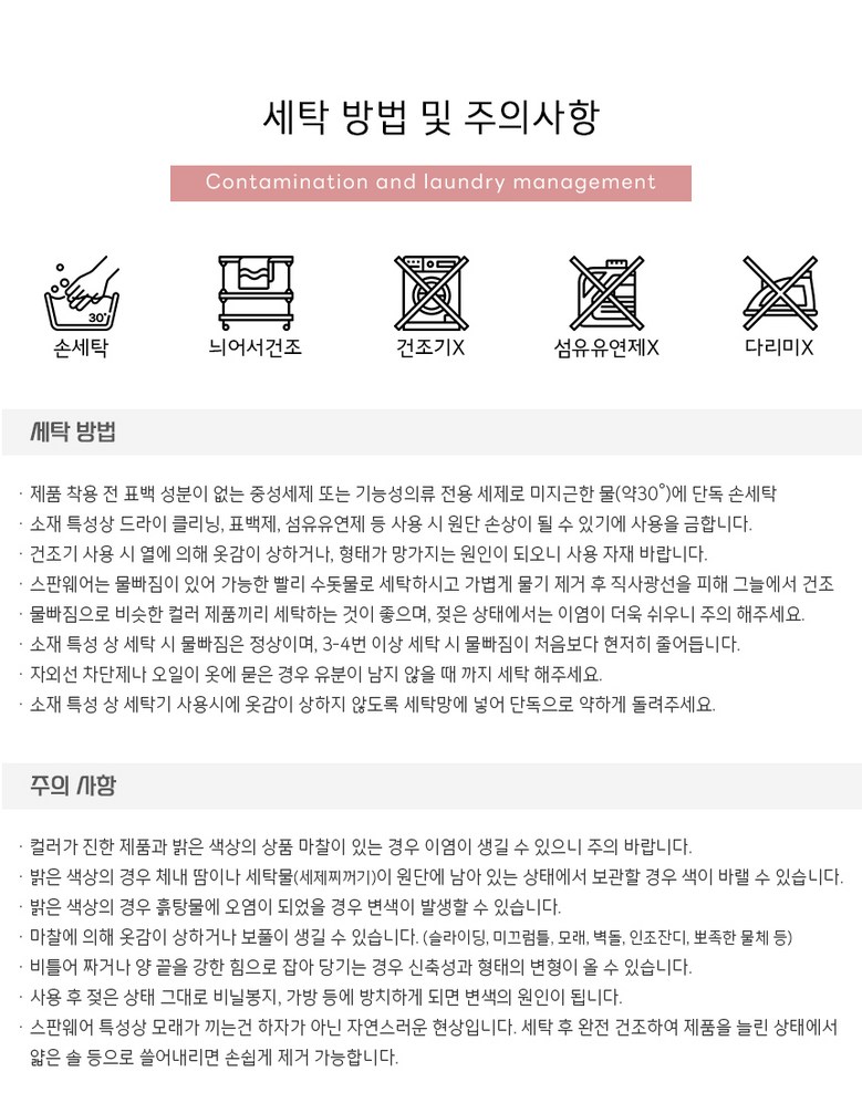 | 제조국 | 상품 상세페이지 참조 | 세탁방법 및 취급시 주의사항 | 상품 상세페이지 참조 |