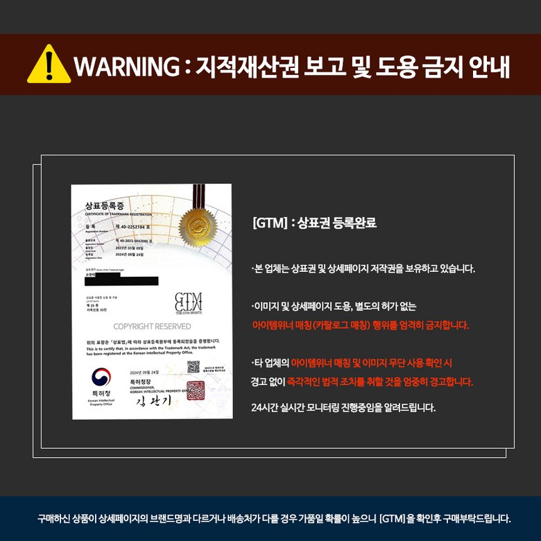 판매 부적격 상품 또는 허위과장광고 및 지식재산권을 침해하는 상품의 경우 신고하여 주시기 바랍니다.