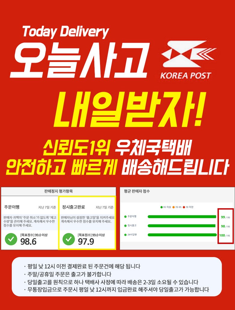 | 배송기간 | ㆍ도서산간 지역 등은 배송에 3-5일이 더 소요될 수 있습니다. - 천재지변, 물량 수급 변동 등 예외적인 사유 발생 시, 다소 지연될 수 있는 점 양해 부탁드립니다. | ||