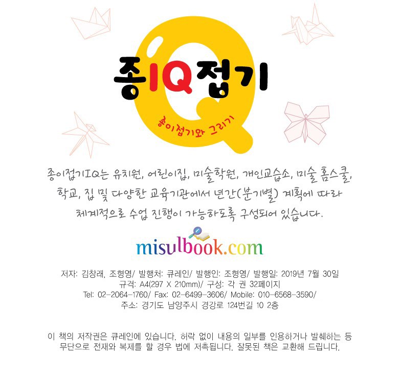 | 도서명 | 종이접기 IQ 세트 | 저자, 출판사 | 김창래, 조형영, 큐레인 |