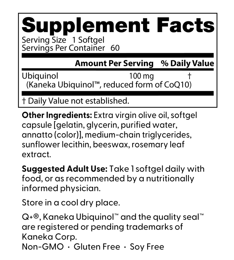 세포의 에너지 생산에 관여하는 유비퀴놀이 함유된 식이 보충제입니다. 1회 제공량 당 100mg의 유비퀴놀을 제공합니다. 섭취 및 흡수가 용이한 소프트젤 형태로 제공됩니다.