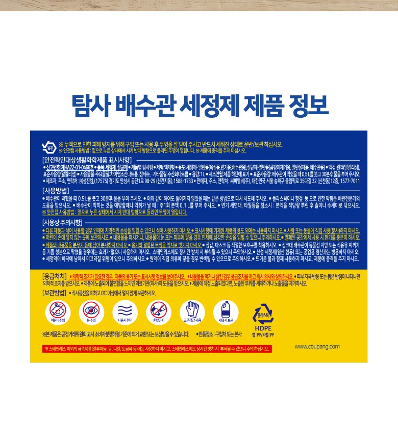 | 품목 및 제품명 | 세정제,살균제 / 탐사펑 | 용도(표백제의 경우 계열을 함께표시) 및 제형 | 컨텐츠 참조 |