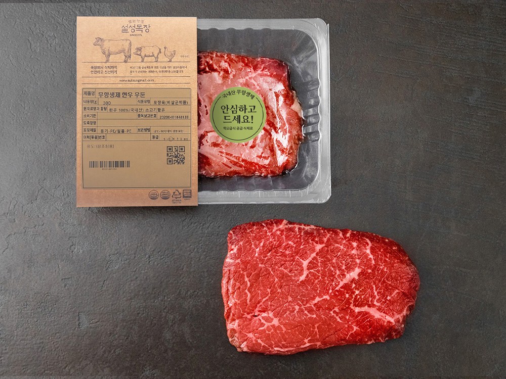 우둔은 소의 볼기 부분으로 육결이 고르고 부드러우며 근내지방 함량이 적어 연하고 담백한 맛을 선사해요. 지방이 거의 없어 육회나 장조림으로 자주 만나볼 수 있죠. 씹을수록 맛있는 우둔살. 무항생제 인증을 받은 설성목장의 한우 우둔으로 안심하고 맛보세요. 우둔살의 진한 육향과 담백한 풍미를 신선한 그대로 즐길 수 있답니다.