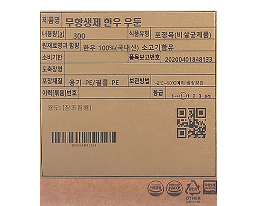 | 소비기한 또는 품질유지기한 | 소비기한(또는 유통기한) : 2026년 04월 29일 이거나 그 이후인 상품 | 세부 품목군별 표시사항 | 축산물 등급표시 : 1+등급 / 이력번호 표시유무 : 이력번호 표시제품임 |