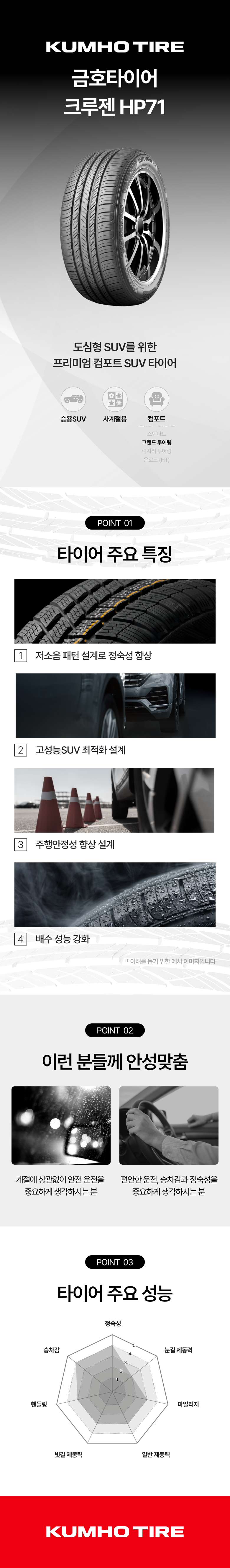 | 품명 및 모델명 | 금호타이어 크루젠 HP71/승용차용 타이어 | 동일모델 출시년월 | 업체미제공 |