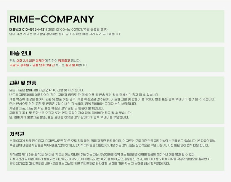 - ㆍ모니터 해상도의 차이로 인해 색상이나 이미지가 실제와 달라, 고객이 단순 변심으로 교환/반품을 무료로 요청하는 경우