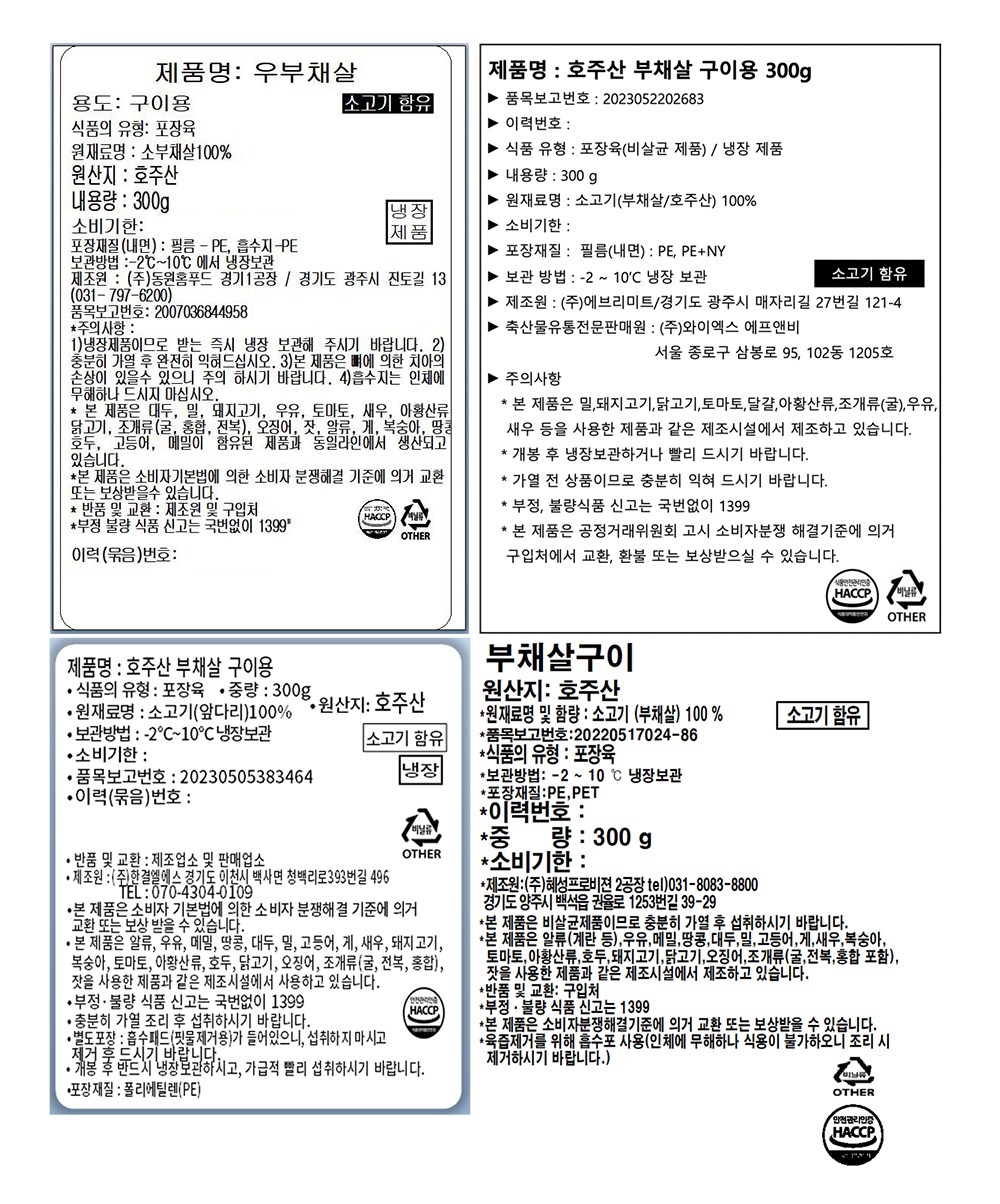 | 품목 또는 명칭 | 부채살구이 | 포장단위별 내용물의 용량(중량),수량,크기 | 300g x 3개,1개 |