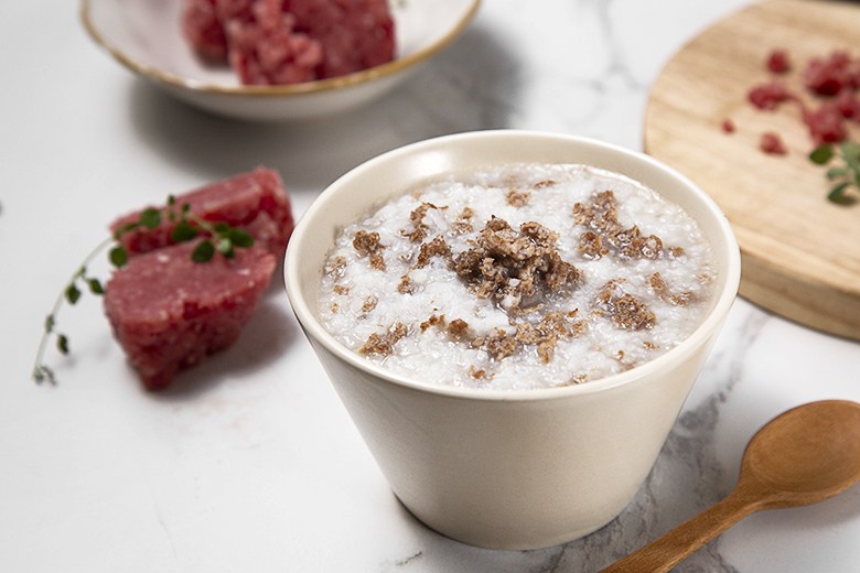 재료: 소고기 다짐육 40 g, 쌀가루 35 g, 물 400 ml, 단호박 40 g