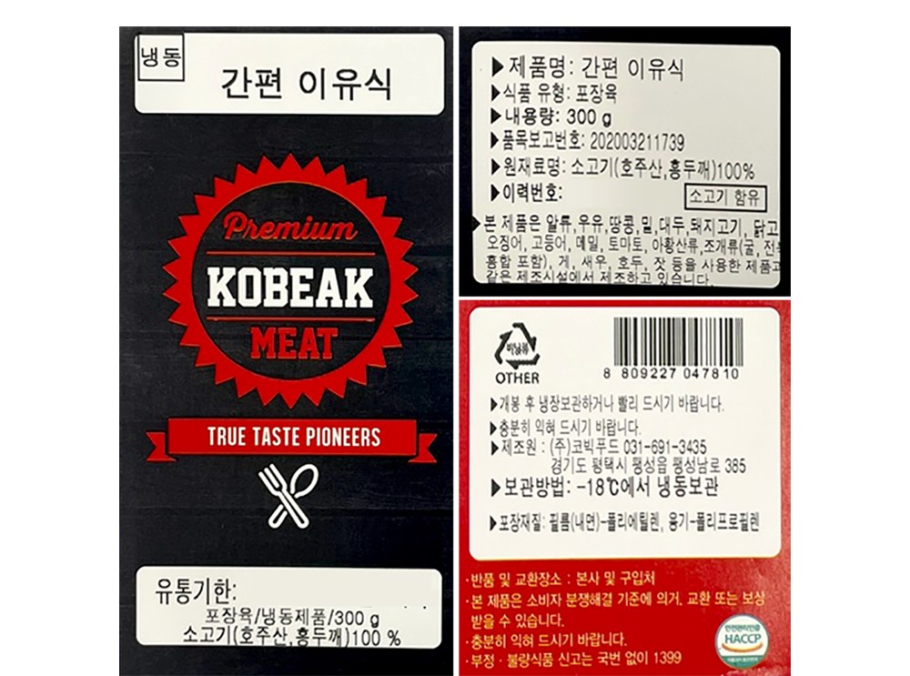 | 품목 또는 명칭 | 간편 이유식 | 포장단위별 내용물의 용량(중량),수량,크기 | 300g x 3개,1개 |
