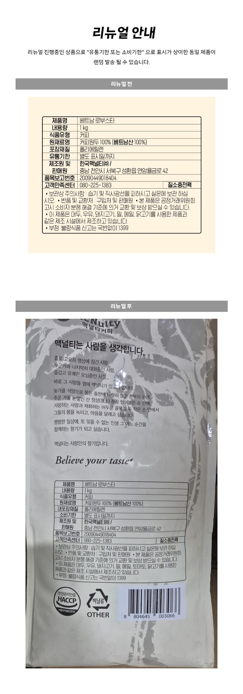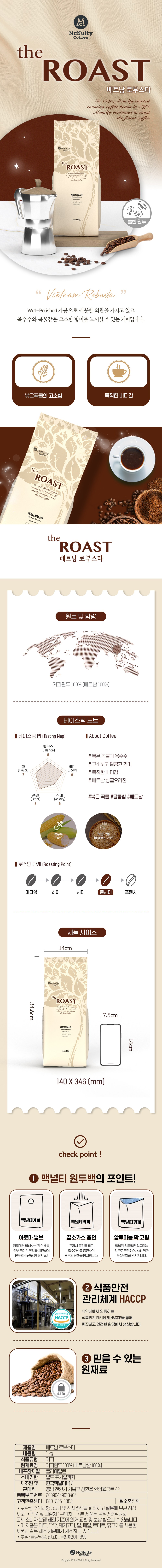 | 제품명 | 맥널티 베트남 로부스타 G1 원두커피, 홀빈 | 식품의 유형 | 커피 |