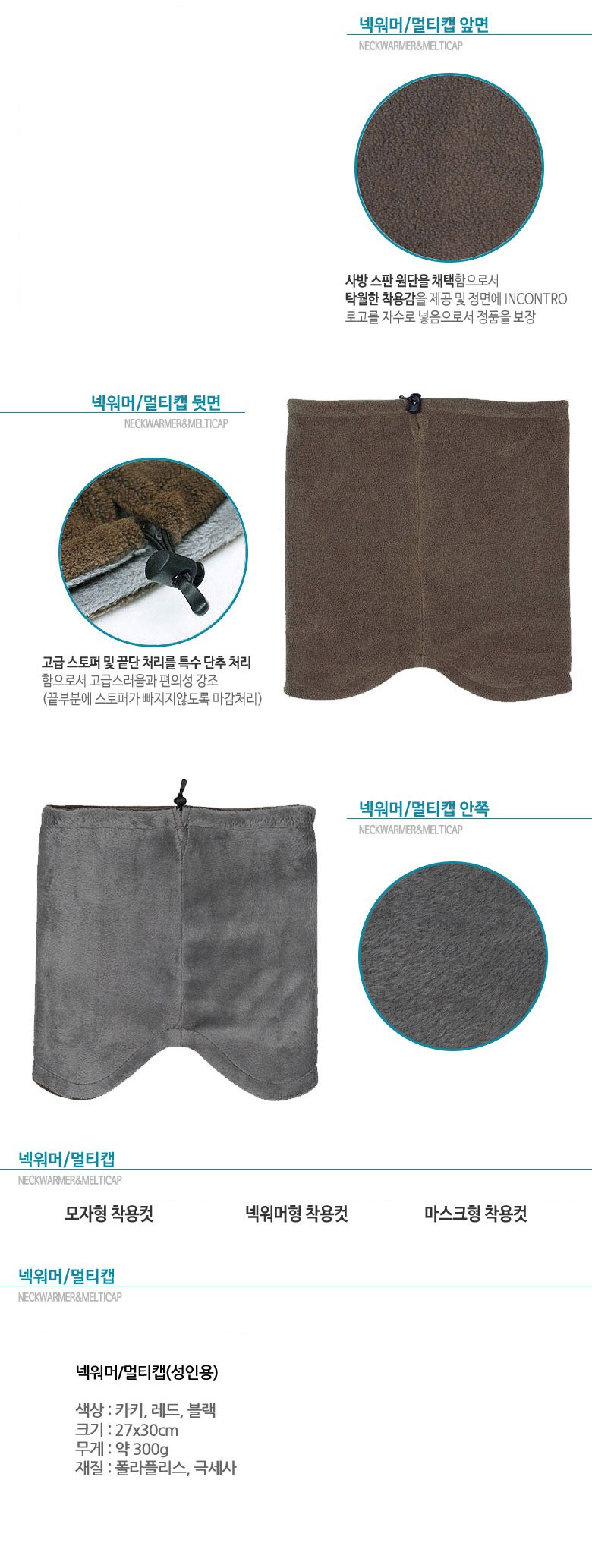 - 모자, 귀마개, 넥워머, 마스크 등으로 다양하게 활용 가능