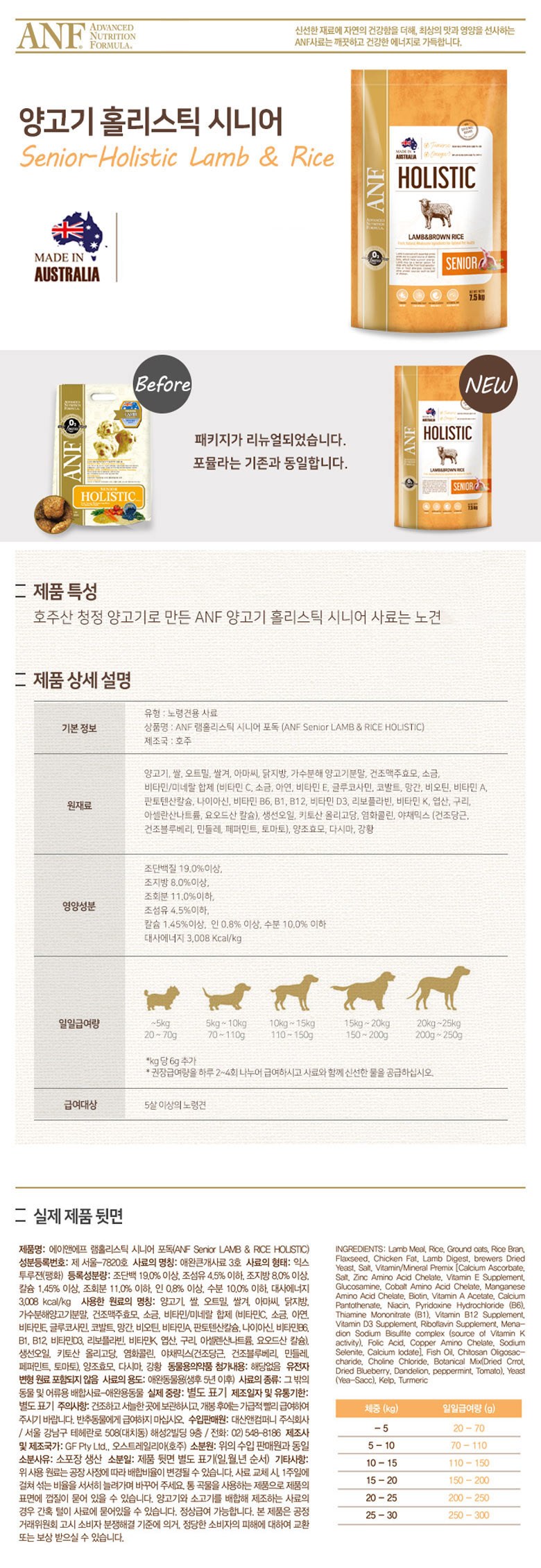 | 품명 및 모델명 | ANF 램홀리스틱 시니어 애견사료, 7.5kg | 인증사항 | 해당 없음 |