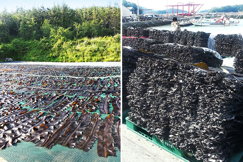 1. 다시마에 묻은 하얀 가루를 젖은 면포로 닦아낸 후 바싹 말려주세요.