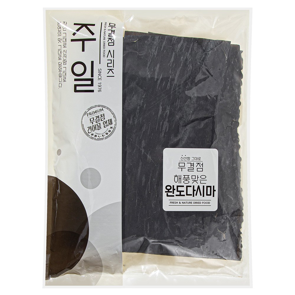 큼지막한 다시마를 소개할게요. 물에 불리면 매끄러운 자태를 자랑한답니다. 육수, 튀각 무침 반찬 등 다양한 요리로 활용해 보세요. 다시마 본연의 담백한 맛과 쫄깃쫄깃한 식감으로 입안이 즐거워질 거예요.