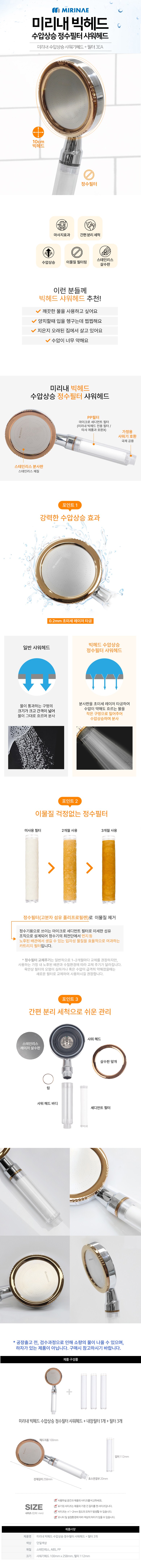 | 품명 및 모델명 | 미리내 빅헤드 수압상승 정수필터 샤워기헤드 + 세디먼트 필터 | 인증/허가 사항 | 해당없음 |