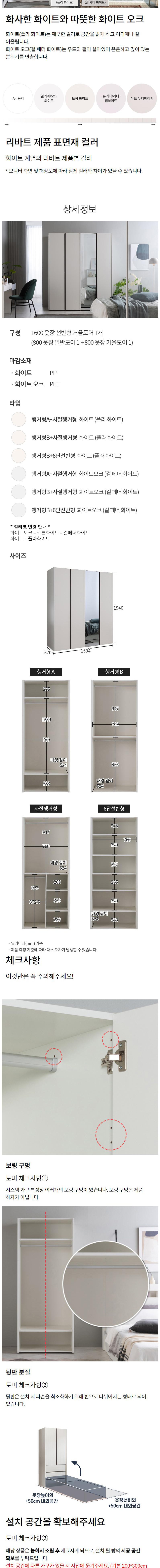 | 품명 | 리바트 토피 1600 선반형 거울도어 옷장 행거형A + 사절행거형 세트 방문설치 | KC 인증정보 | 해당없음 |
