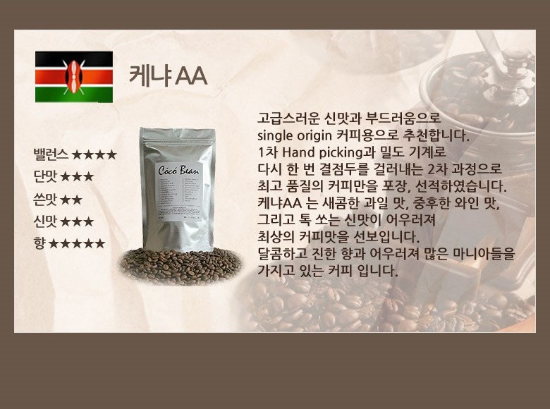 | 제품명 | 케냐AA | 식품의 유형 | 커피 |
