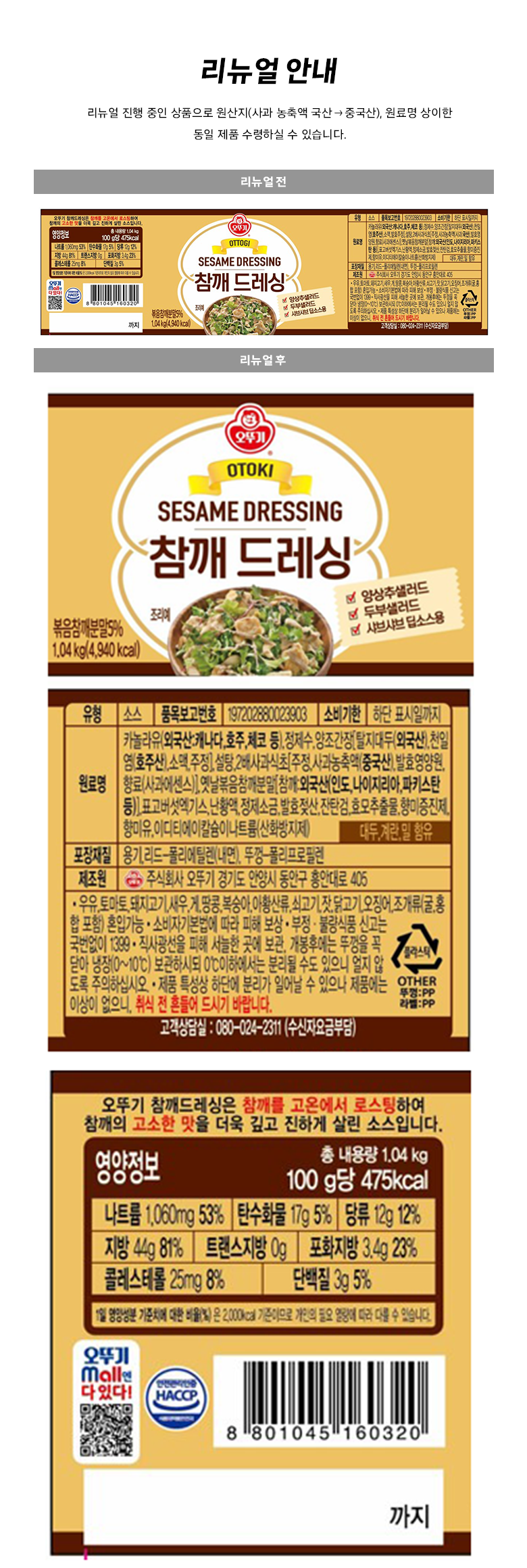 | 제품명 | 오뚜기 참깨드레싱 | 식품의 유형 | 소스 |
