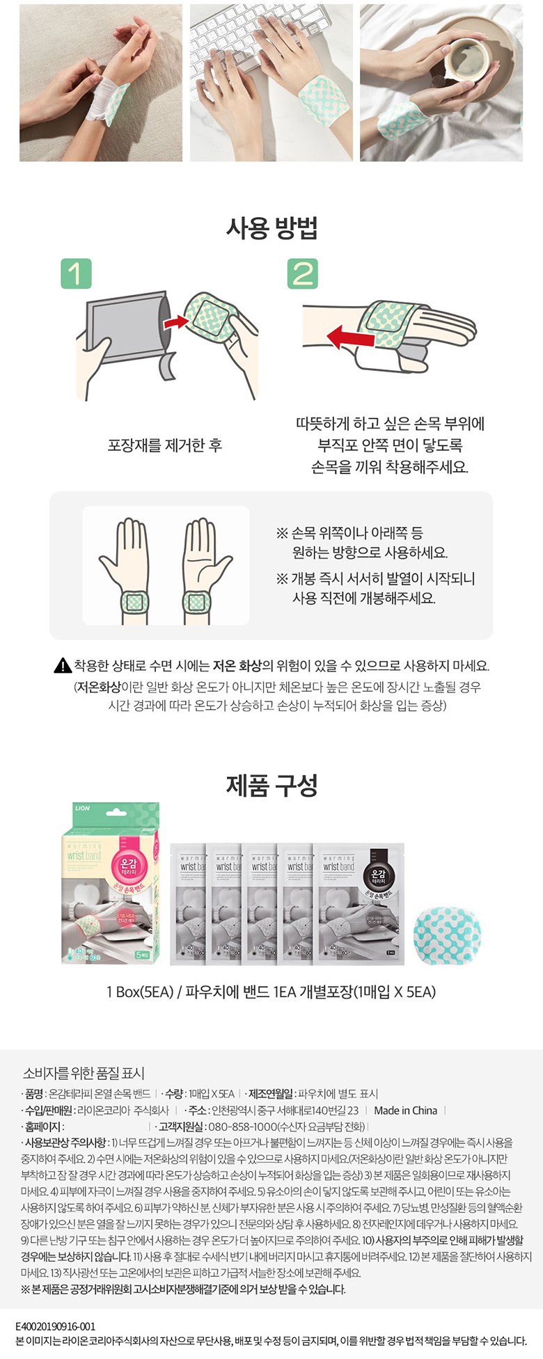 | 품명 및 모델명 | 온감테라피 온열 손목 밴드 5p | 인증/허가 사항 | 해당없음 |