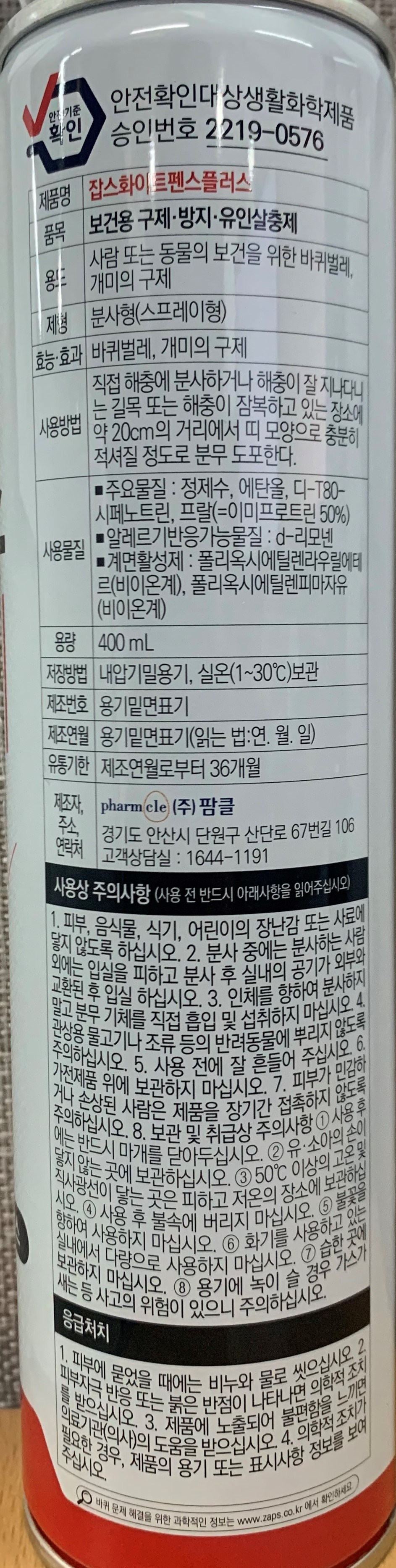 | 품목 및 제품명 | 보건용 구제, 방지, 유인살충제 / 잡스화이트펜스플러스 | 유통기한 | 업데이트 예정 |
