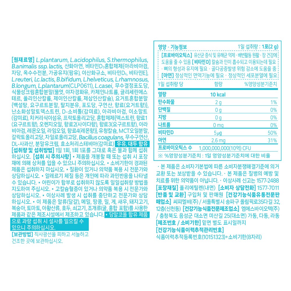 - 유산균 종류: 신바이오틱스