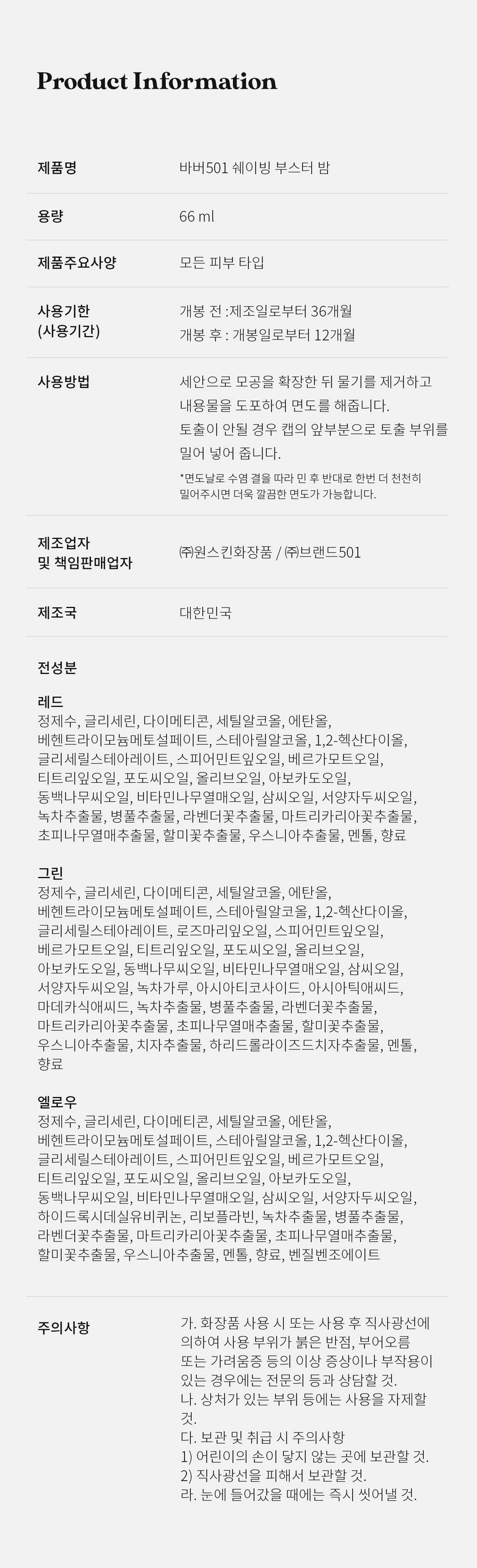 | 화장품제조업자, 화장품책임판매업자 및 맞춤형화장품판매업자 | 상품 상세페이지 참조 | 제조국 | 상품 상세페이지 참조 |
