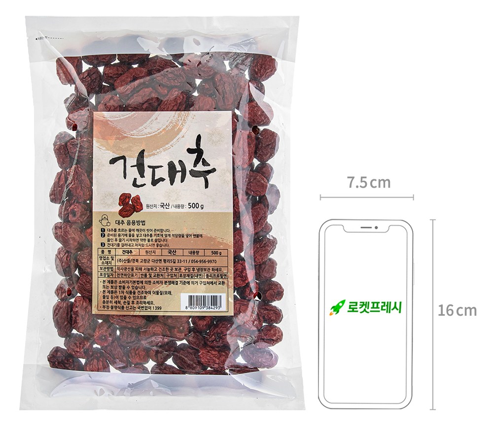 알이 크고 향이 좋은 건대추예요. 잘 말린 건대추 특유의 달달하고 향긋한 내음이 특징이랍니다. 과하게 달지 않고 은은하게 감도는 단맛이 매력적이죠. 끓는 물에 건대추를 우려 차를 만드셔도 맛있고요. 잘게 썰어 약밥, 수정과, 떡의 고명으로 사용하셔도 좋아요.