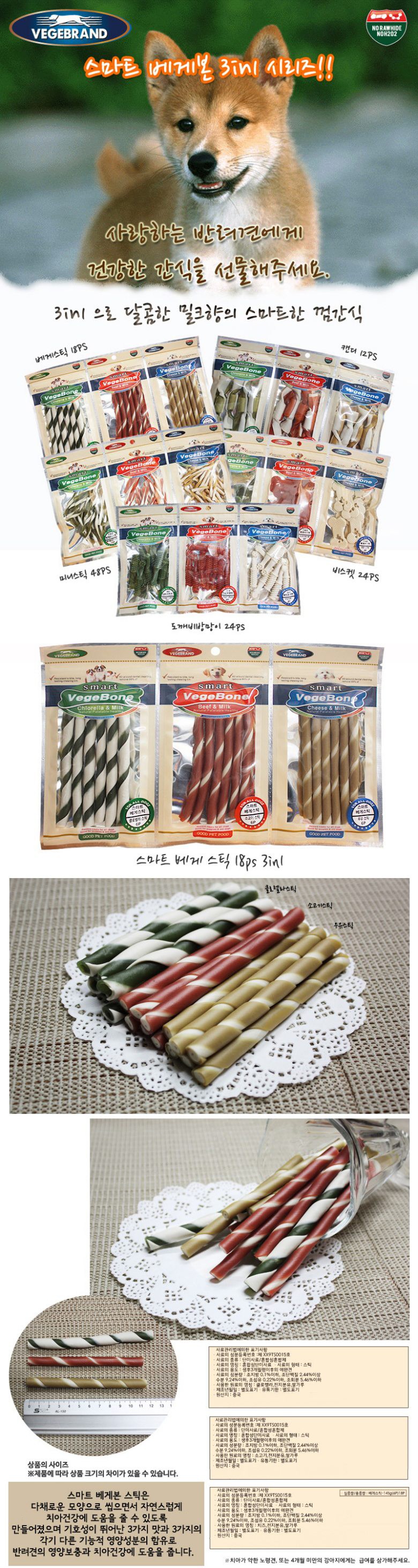 | 품명 및 모델명 | 스마트베게본 스틱 3종 | 인증/허가 사항 | 사료관리법에 따른 성분등록번호 : 컨텐츠 참조 |