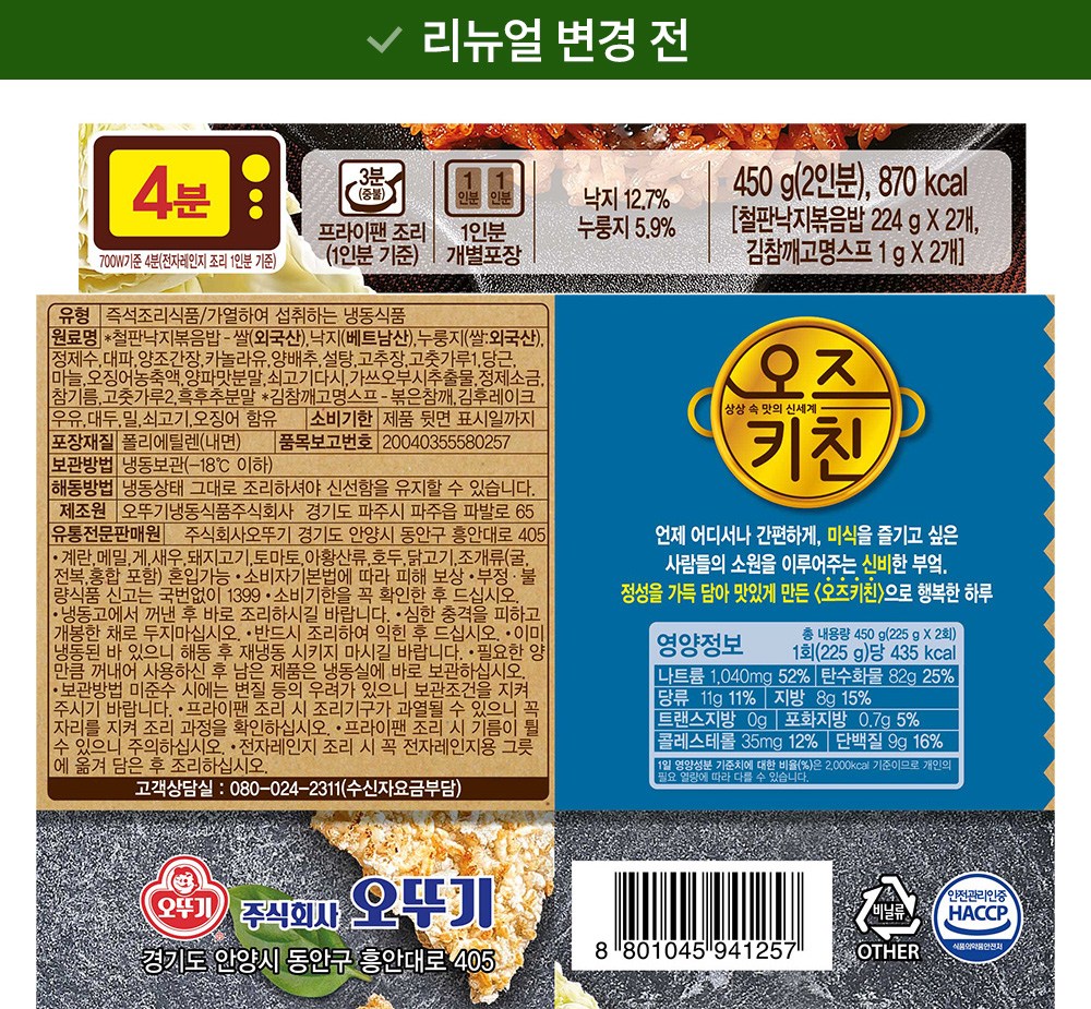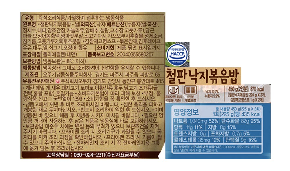 | 제품명 | 철판낙지볶음밥 | 식품의 유형 | 컨텐츠 참조 |