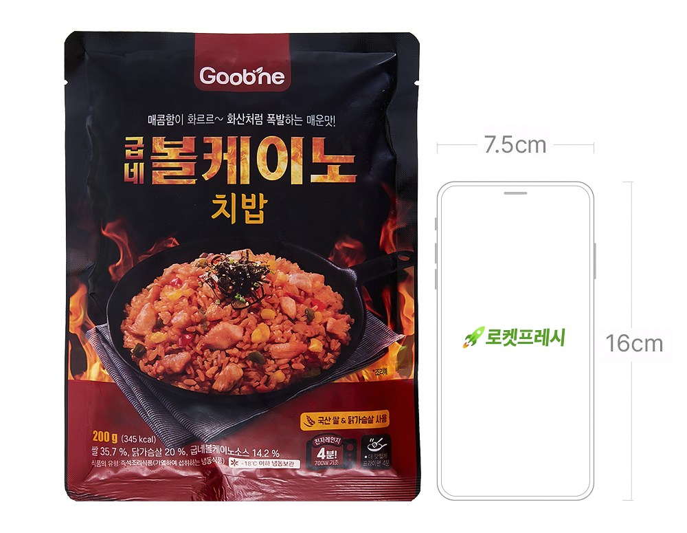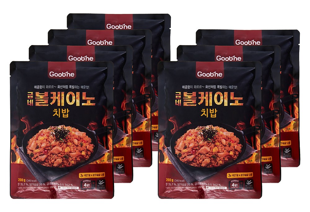 입안에서 화산이 폭발하는 듯한 화끈한 불맛을 선사하는 굽네의 볼케이노. 치킨 없이도 볼케이노 특유의 얼얼한 맛을 볶음밥으로 맛볼 수 있어요. 한 알 한 알 매콤한 풍미가 배어든 볶음밥에, 쫄깃한 닭가슴살과 잘게 썬 채소가 어우러져 식감까지 풍성하답니다. 전자레인지나 프라이팬으로 조리해, 간편하게 즐겨보세요.