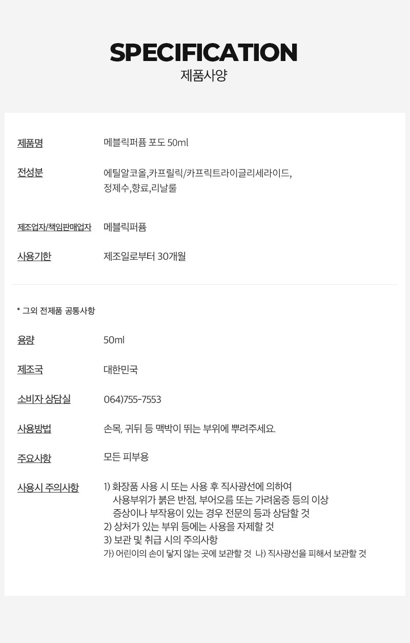 | 용량(중량) | 50ml | 제품 주요 사양 | 모든 피부용 |
