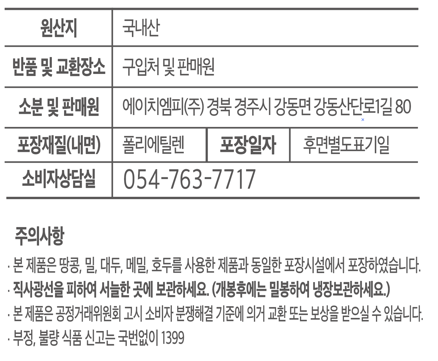 | 생산자(수입자) | 컨텐츠 참조 | 원산지 | 컨텐츠 참조 |