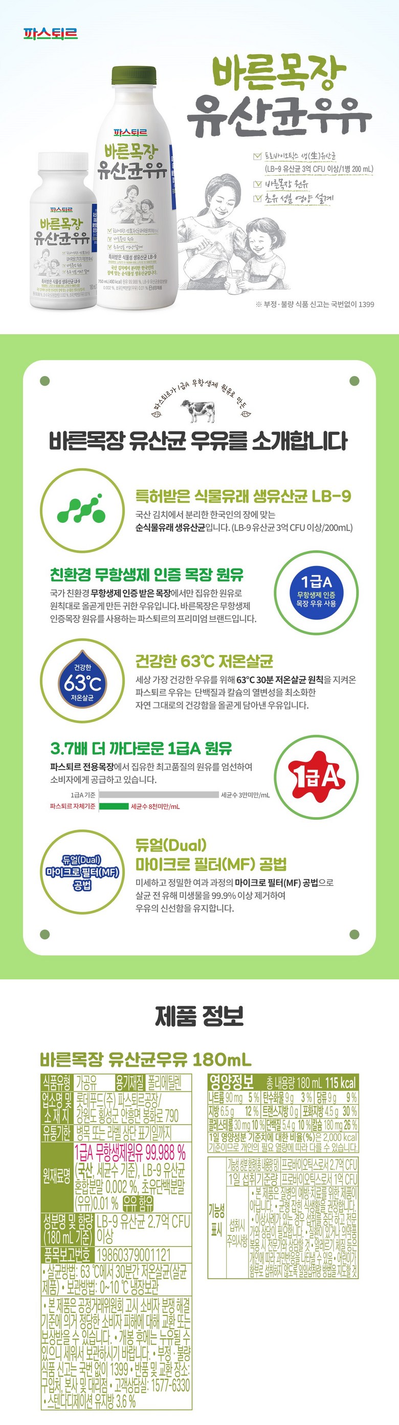 - 지방 함량: 무항생제우유
