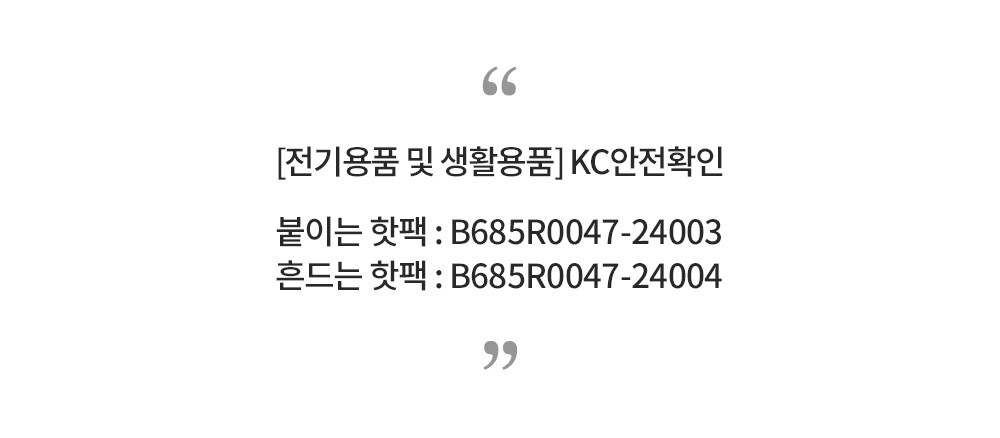 | 품명 및 모델명 | 1회용 핫팩 / THERMAL PACK | 인증/허가 사항 | B685R0047-24004 |