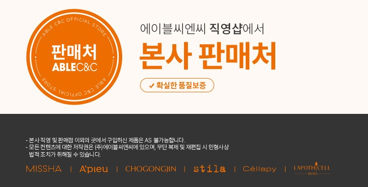 | 화장품제조업자, 화장품책임판매업자 및 맞춤형화장품판매업자 | 리뉴얼 전: ㈜크레비스 / ㈜에이블씨엔씨, 리뉴얼 후: ㈜코스앤피플 / ㈜에이블씨엔씨 | 제조국 | 한국 |