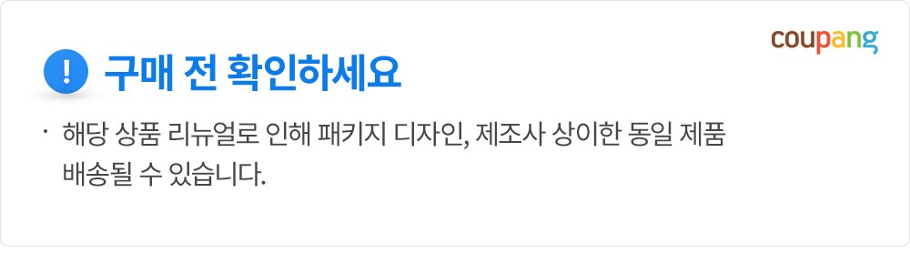 | 교환/반품 신청 기준일 | ㆍ단순변심에 의한 로켓배송 상품의 교환/반품은 제품 수령 후 30일 이내까지, 교환/반품 제한사항에 해당하지 않는 경우에만 가능 (교환/반품 비용 고객부담) ㆍ상품의 내용이 표시·광고의 내용과 다른 경우에는 상품을 수령한 날부터 3개월 이내, 그 사실을 안 날 또는 알 수 있었던 날부터 |