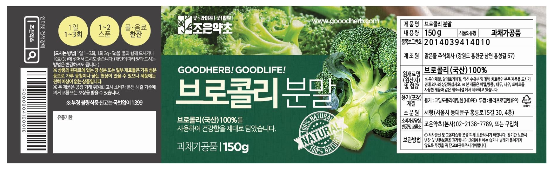 | 제품명 | 브로콜리분말 | 식품의 유형 | 과,채가공품 |