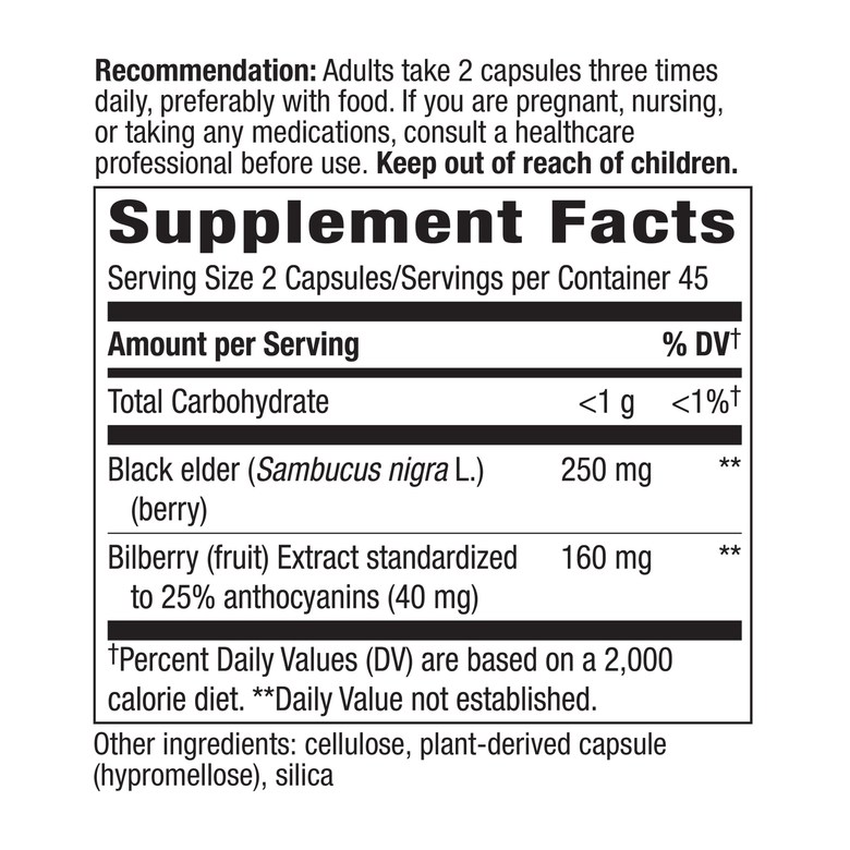 Billberry(월귤나무) 추출물이 함유된 식이 보조제입니다. 셀룰로오스, 실리카 등이 함유되어 있습니다.
