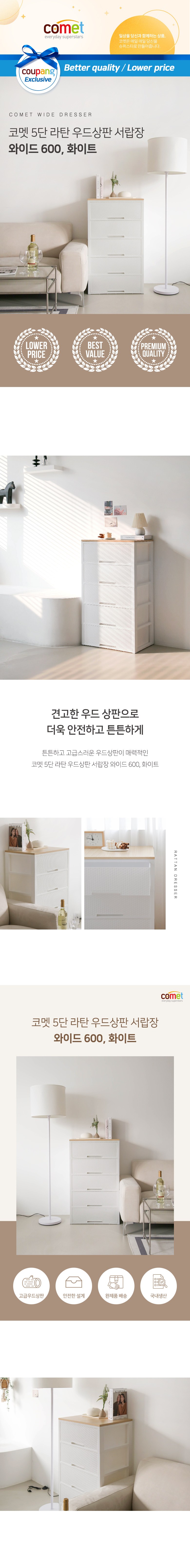 | 색상 | 화이트 | 구성품 | 코멧 5단 라탄 우드 상판 서랍장 와이드 600, 화이트 |