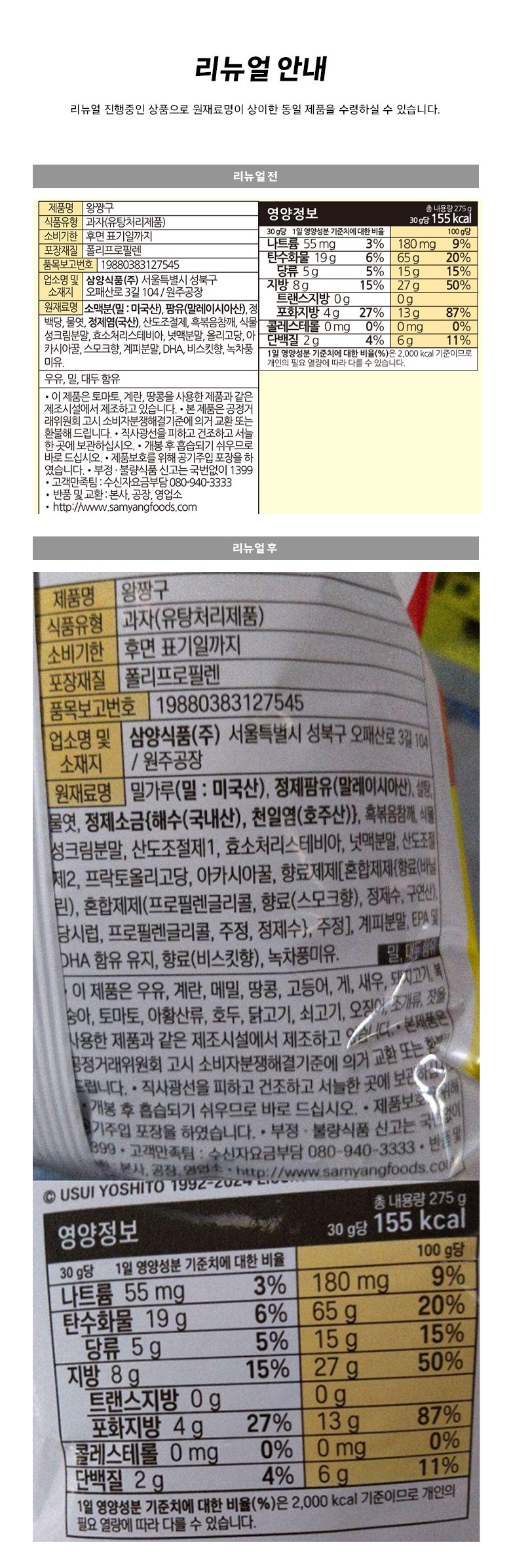| 제품명 | 컨텐츠 참조 | 식품의 유형 | 컨텐츠 참조 |
