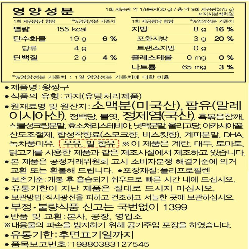 | 제품명 | 왕짱구 | 식품의 유형 | 컨텐츠참조 |