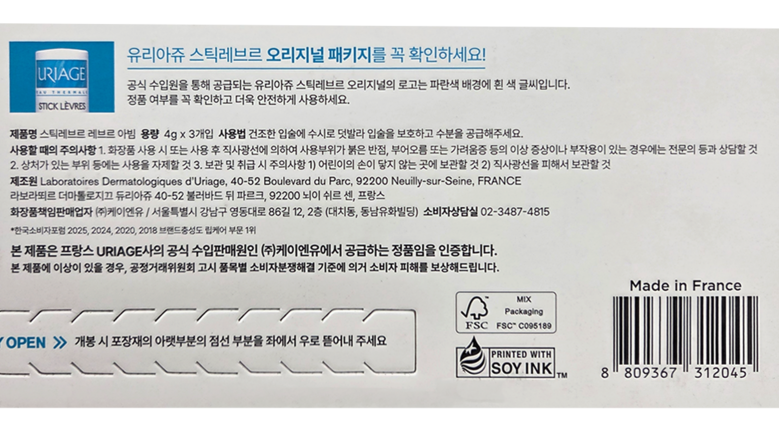 | 화장품제조업자, 화장품책임판매업자 및 맞춤형화장품판매업자 | 라보라뙤르 더마톨로지끄 듀리아쥬 40-52 불러바드 뒤 파르크, 92200 뇌이 쉬르 센 | 제조국 | 프랑스 |