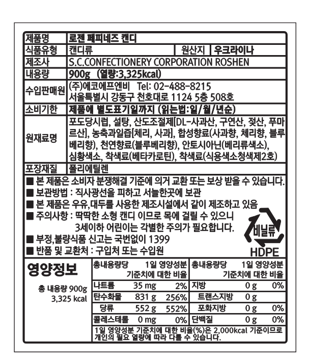 | 제품명 | 로셴 페피네즈 캔디 | 식품의 유형 | 캔디류 |