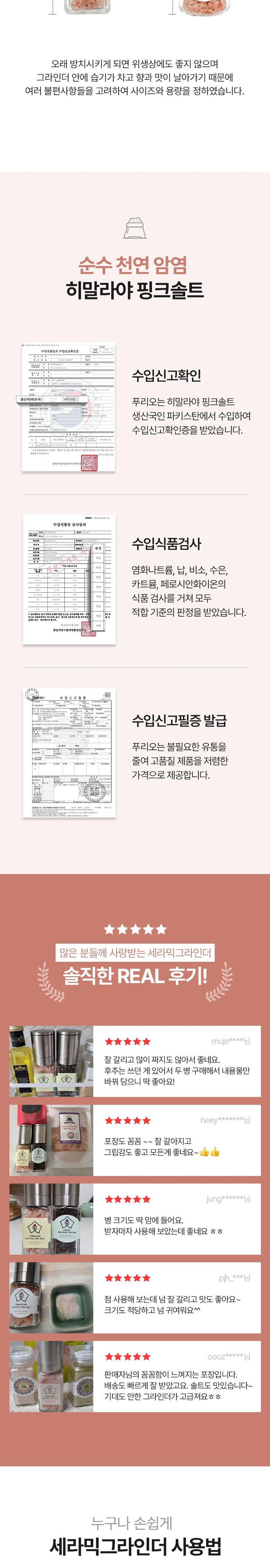 | 제품명 | 푸리오 히말라야 핑크솔트소금 세라믹그라인더100g or 80g | 식품의 유형 | 기타소금 |