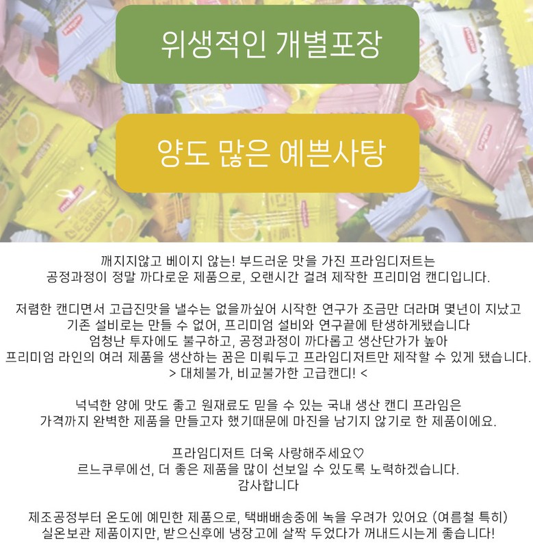| 제조연월일, 소비기한 또는 품질유지기한 | 상품 상세페이지 참조 | 세부 품목군별 표시사항 | 상품 상세페이지 참조 |