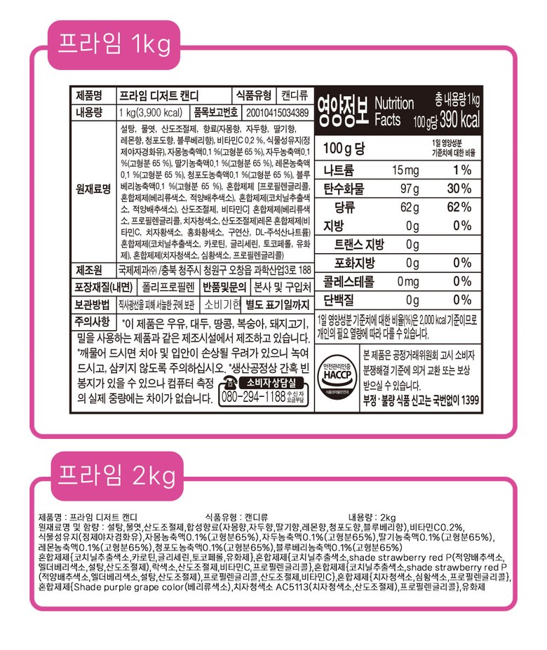 지금 클릭하신 제품은 프라임디저트 2kg (비닐) 제품입니다.